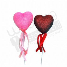 לב אוהב מצופה נצנצים בשילוב סרטי סטאן על מקל מתכת דקיק בצבע לבן